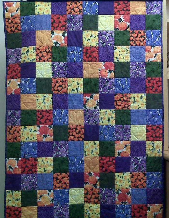 CSmith94598 Rebuilding Together with the Robinsons - This quilt was made specifically to donate as part of a Rebuilding Together project in April 2008. In addition to the team of 30 co-workers who were making repairs, building a deck, and repainting the Robinsons' home, I made this colorful quilt to liven up the homeowner's livingroom.