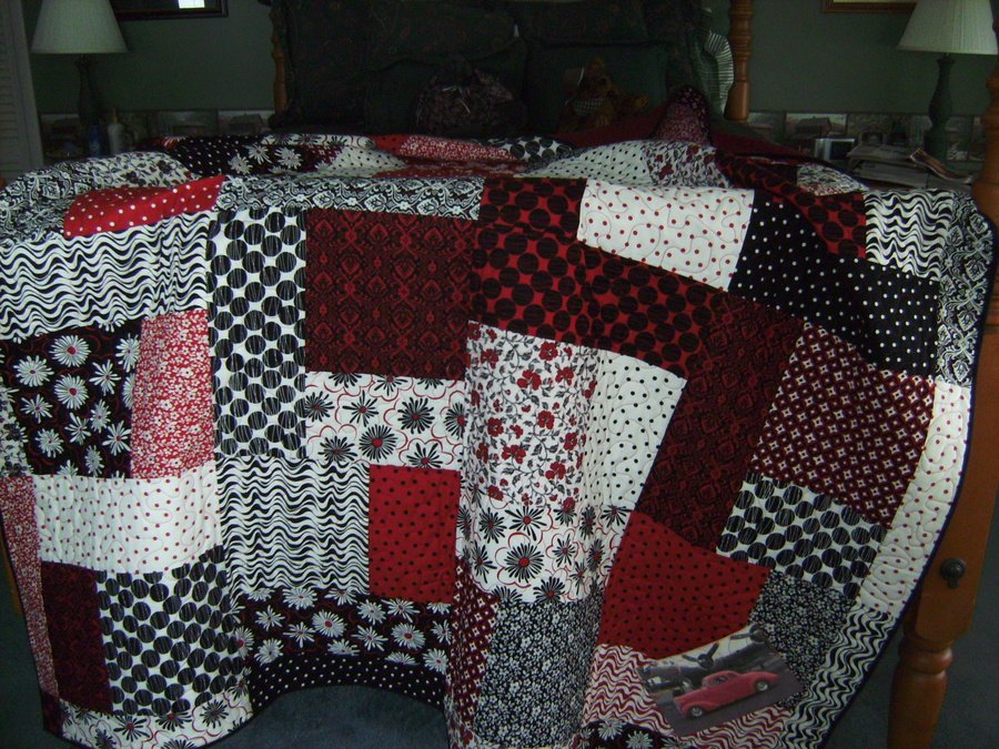 | Design Source - Description | Quilt made for Street Rodding friends for Christmas 2007. Has a picture of their car appliqued onto corner. |