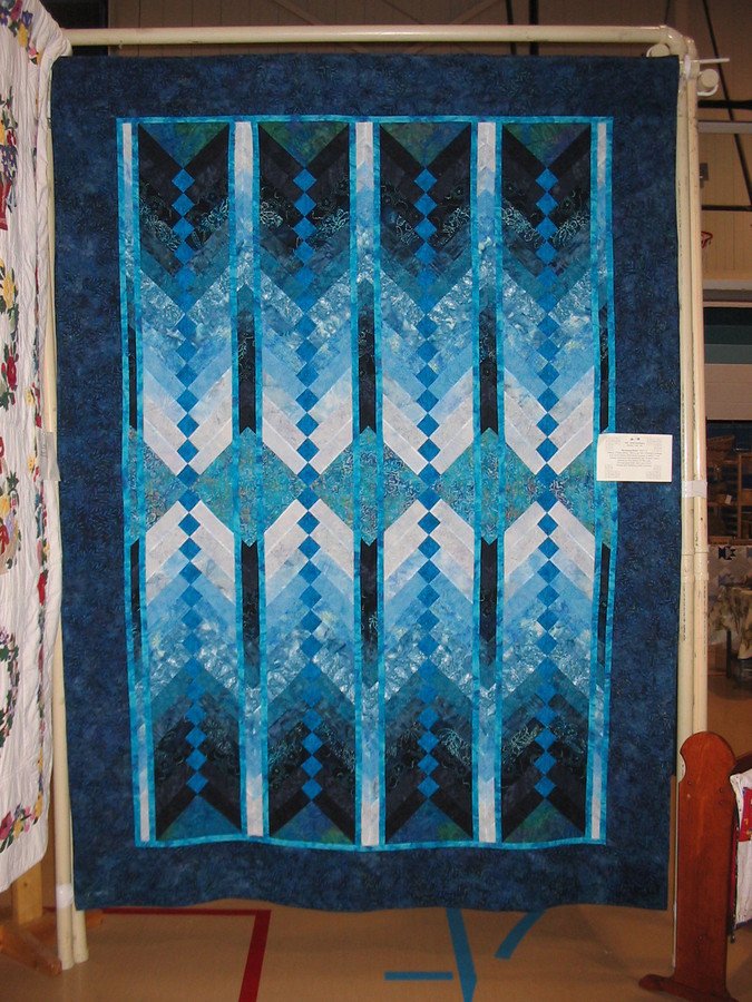 BethMI Blueberry Braid - I made this quilt for our son, Charlie's, high school graduation. He chose the pattern, variation and color, and together we spent a fun afternoon choosing the fabrics. In the borders, I have quilted about 150 words -- his friends and favorite foods, books, movies, music, vacations, activities, teachers, plus school names, sports words, etc. Unfortunately, with the matching thread, the words don't show, but he says that he knows they are there!