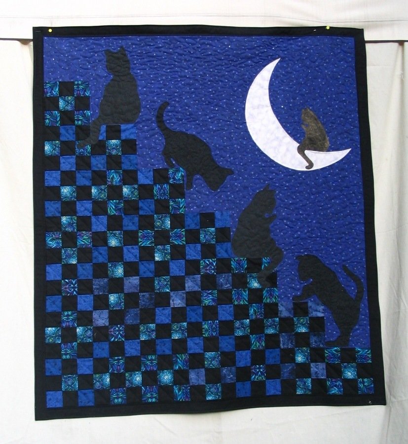 | Design Source - Description | I made this quilt for a fund raising auction for a no kill cat shelter, I'm not sure where it ended up but the shelter is in Chicago. The original pattern does not have the cat sitting in the moon. |