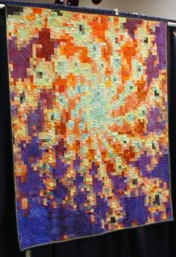 | Design Source - Description | This spiral seems to move beyond the quilt's size and has the feeling of infinity associated with fractals. It has a piped binding and is quilted with variegated rayon thread. |