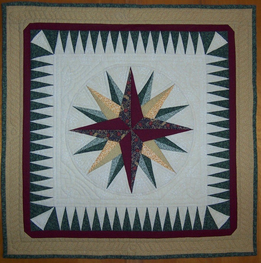 Debra3580 Mariners Compass - I made this Mariner's Compass because my boyfriend served in the US Navy and we both love the sea. It is hand pieced and hand quilted