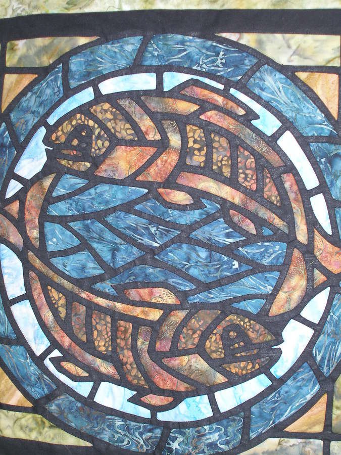 cariboodon Salmon Run - This is a stained glass applique pattern. I used 100% cotton batik fabric