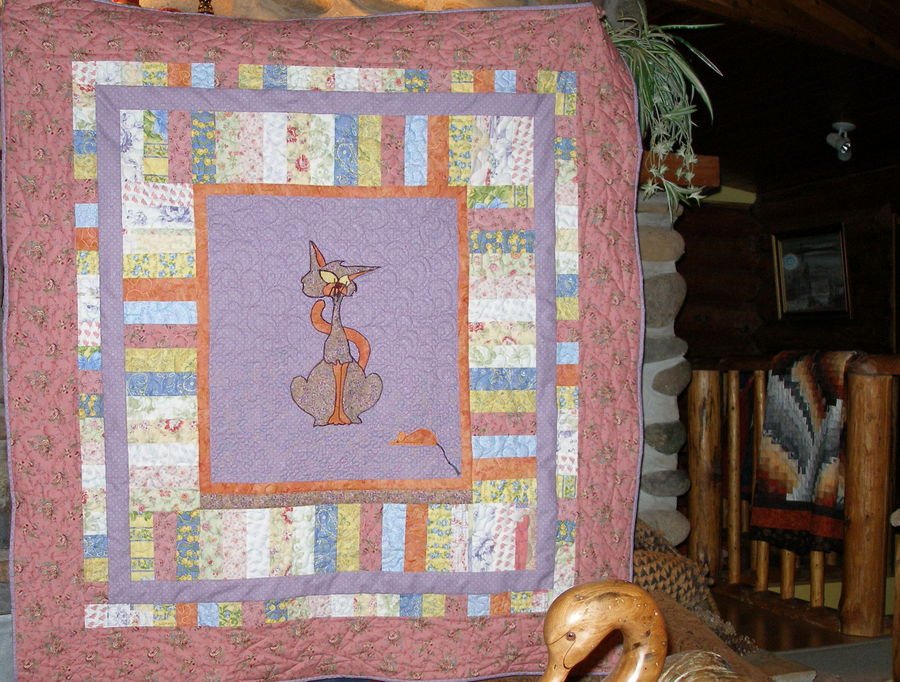 | Design Source - Description | The center of this quilt is adapted from the wall hanging Cat Nip. I used leftover fabric from previous quilts to add borders . I also added the mouse |