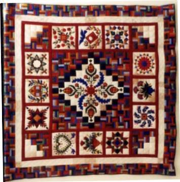 pdking2002 ALBUMN OF MEMORIES - A BLOCK OF THE MONTH BY ROBERT CALLAHAN(IF I MISSPELLED HIS NAME I APOLOGIZE); WE TOOK OUR OWN COLOR IDEAS,THIS WAS MY FRIENDS & I 2ND RAFFLE QUILT; THE WINNER DIDN'T WANT IT SO ONE OF OUR MEMBERS,MAXINE NATIONS BOUGHT IT AND GAVE IT TO ME FOR MY BIRTHDAY THIS YEAR;IT HAS A VERY PERSONAL MEANING FOR THE 2 OF US.; AND MEMORIES THAT I WILL NEVER FORGET. I AM TRULY HONORED TO HAVE THIS GIFT GIVEN TO ME