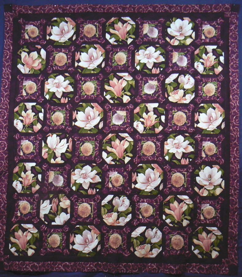 | Design Source - Description | This quilt was designed to showcase a large print. The fabric I used was Benartex Flower Show II. I created the design for my neightbor and knew it would work well when I saw the Benartex line. |