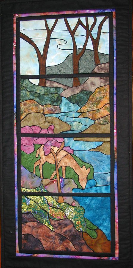 carolsloan The Woodlands II The Fawn - Another in the series of three that was a tribute to Louis Tiffany. This is also a victorian applique quilt. Probably best described as an intermediate technique that is very easy to learn. See The Brook for more info.