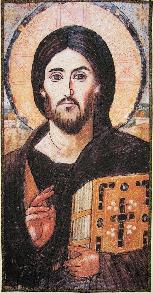 Mirkwood Christ Pantokrator - This is the second in my Icon series using Beth Wheeler's technique (Episode 211). "Pantokrator" means "All Mighty" in Greek. This quilt is based on the oldest icon in existence, dating from about 500 AD. A close-up is in my profile.