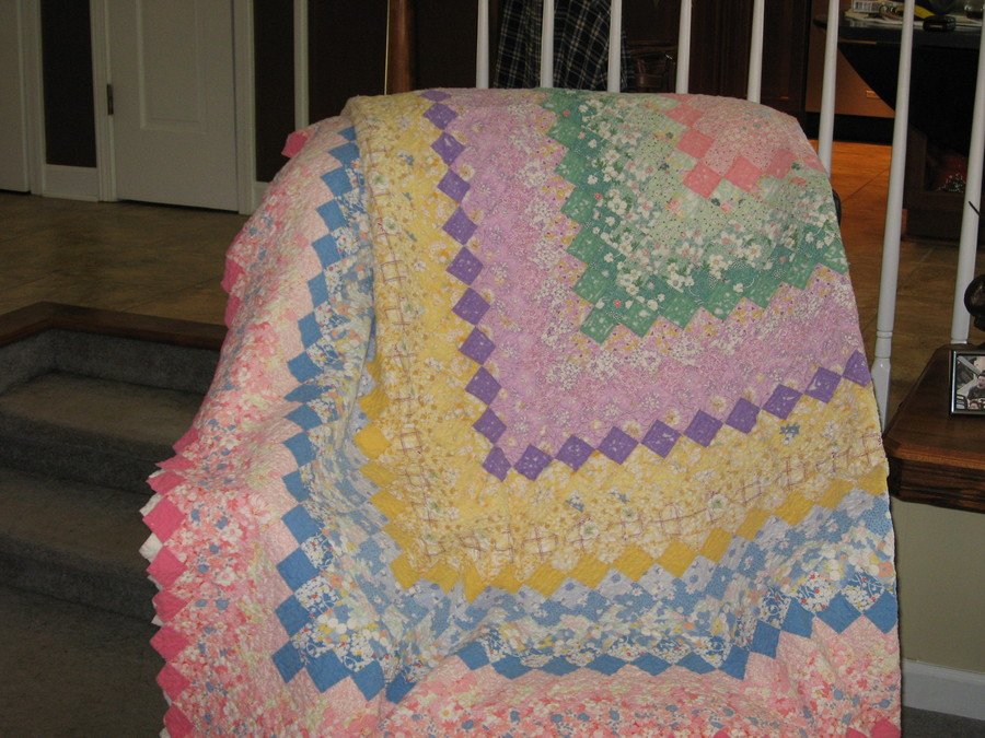 luvquilting Lucky Find - Beautiful full-size quilt bought at estate tag sale for DD; there was another one with more primary colors which I wish I'd also bought! Didn't realize how gorgeous this quilt was until I got it home and under decent lighting....was really hoping DD would decide she didn't want it, but no such luck! :)
