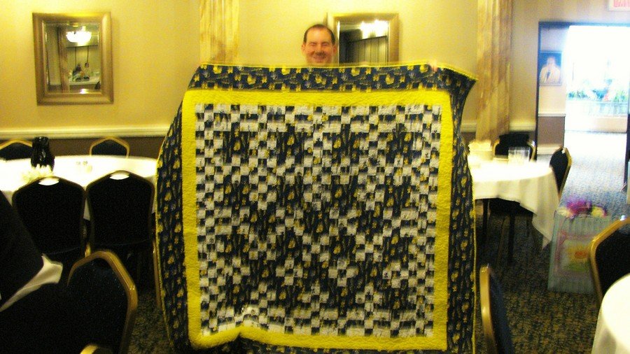 klynn8220 MICHIGAN WOLVERINE'S - MICHAEL IS MY OLDEST SON WHO RECENTLY TIED THE KNOT. BIG,BIG, SPORTS FAN AND MICHIGAN IS HIS FAVORITE COLLEGE TEAM. SO I SURPRISED HIM FOR HIS WEDDING SHOWER AND MADE HIM A MICHIGAN QUILT WITH NOTHING BUT MICHIGAN FABRICS.
