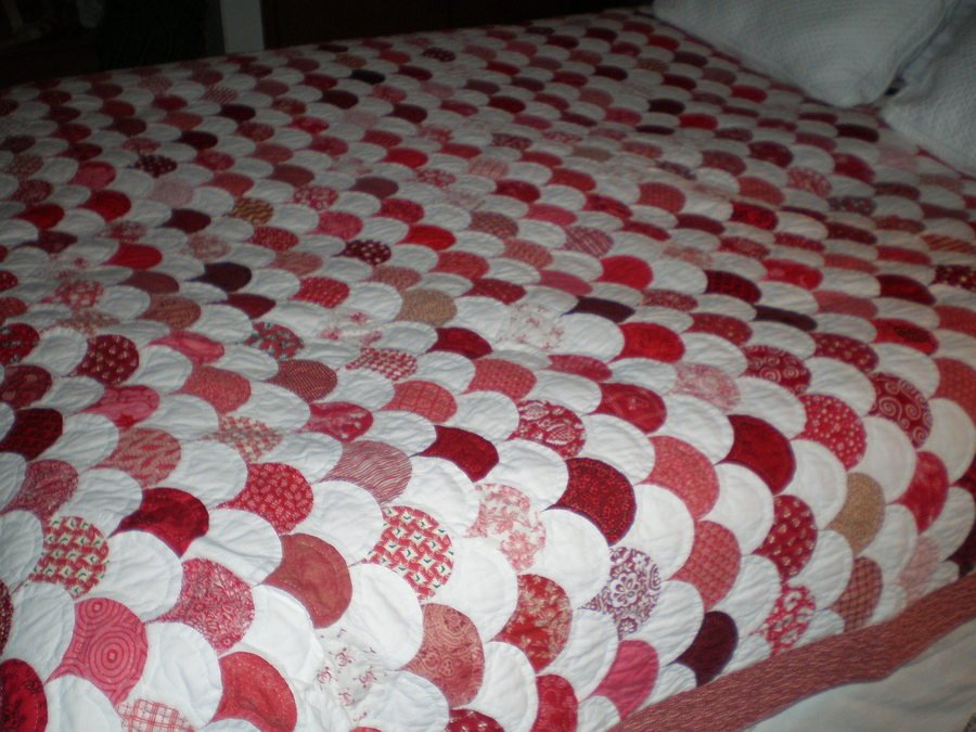 grayciesgrammy Clam Shells - Hand pieced with silk thread, using various reds in my stash and muslin. Hand quilted