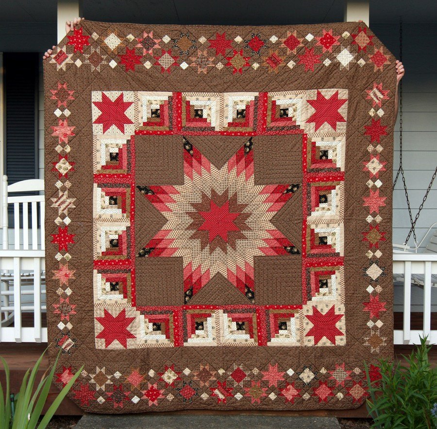 GuysQuilt2 Civil War Stars - I took a Lone Star class earlier this year and made the center block. The rest was up to us. I had seen a photo somewhere of a Lone Star surrounded by log cabin blocks so I decided to try that and from there I wanted more stars so I came up with the outer border. It won a People's Choice Award at a quilt show back in April - I was quite flattered! The fabrics are all from Judy Rothermel's Civil War Classics line and some from her Civil War Backgrounds. Our exchange student really liked this one so it is going home with him to France.