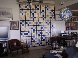 AmyBee 50th anniversary signature quilt - made to celebrate the 50th anniversary of my parents, the quilt top was presented as a surprise for my parents at their anniversary celebration. There are over 400 signatures including one from the college professor in whose class they met! Some signature blocks tell stories, or have the family brand as our family was part of a community of 4 and 5 generation ranchers in New MExico.