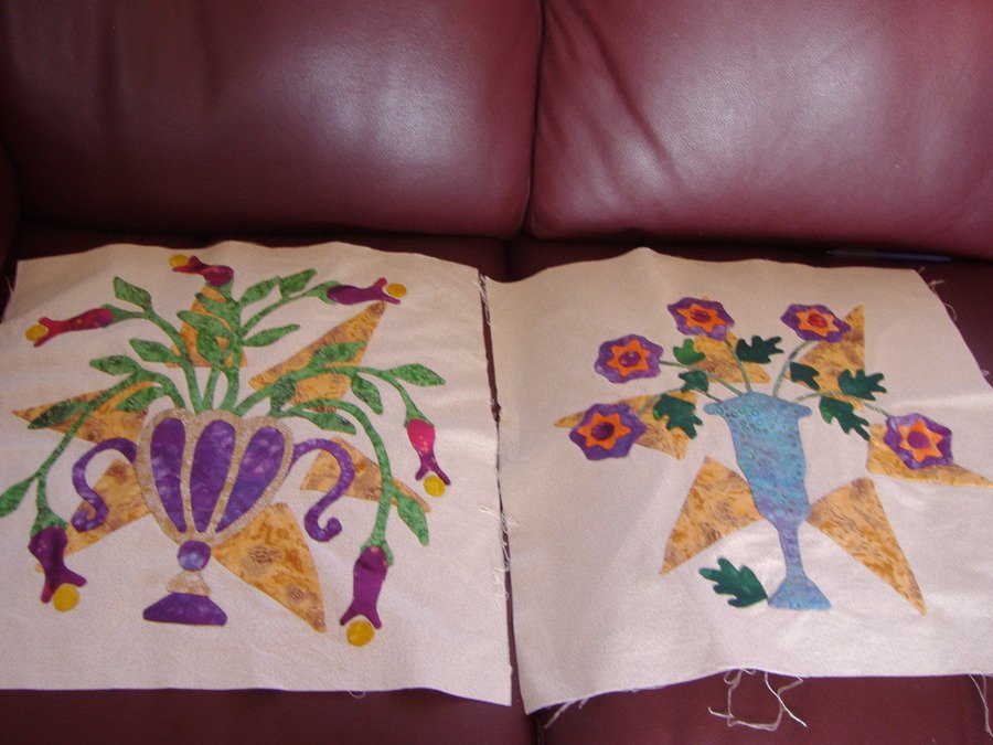 Flynda January and February Block of the Months - Here are my first attempt to do the block of the month project. I used needle turned appliqué and started this in the middle of June. I hope to catch up with the blocks by August since I'm not working this summer. What fun, but what a lot of work!
