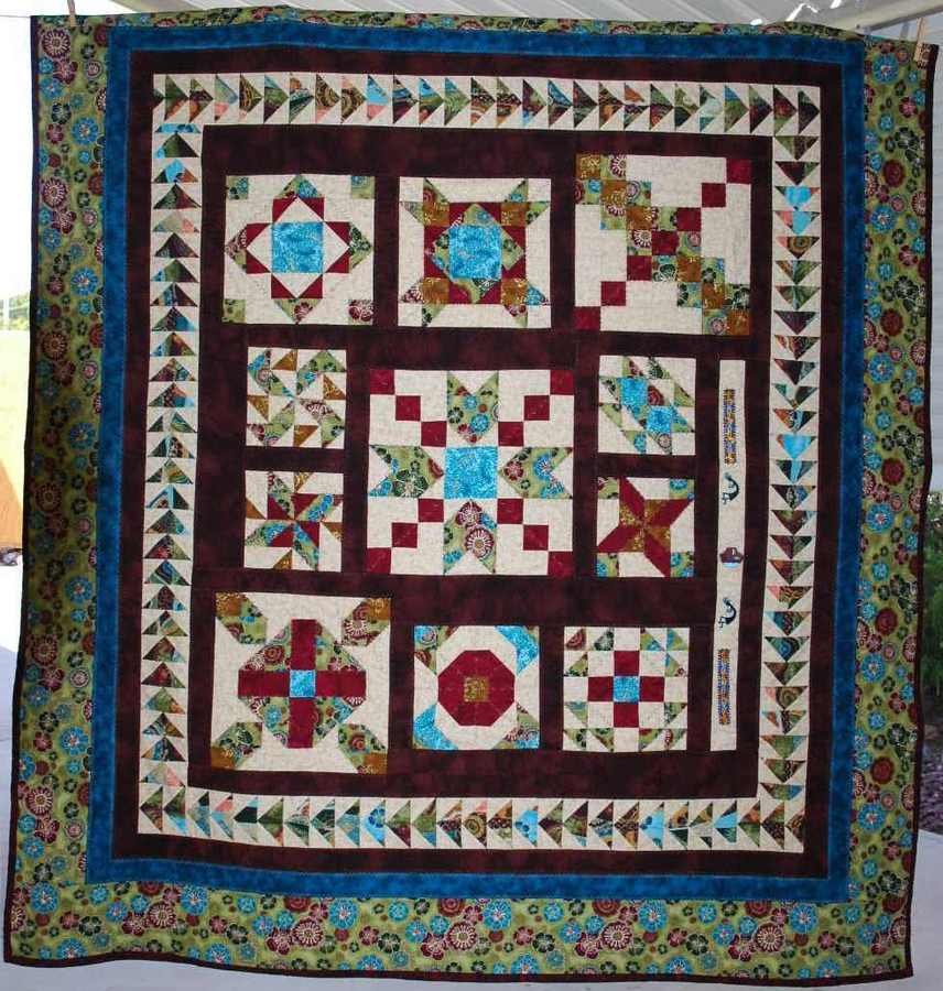 | Design Source - Description | Multiple blocks of varying sizes, bordered and an area to embroider with numerus borders, one of flying geese. Wonderful design which can be varied numerous ways for any theme. |