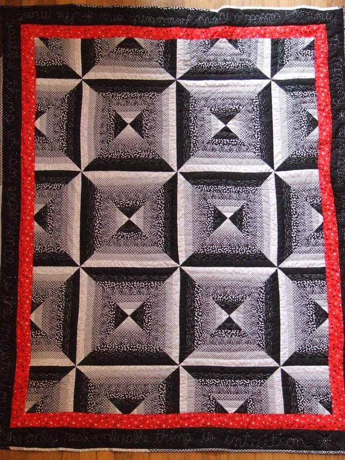 | Design Source - Description | This was a graduation quilt for my daughter. She wanted a black and white quilt that looked like an optical illusion. |