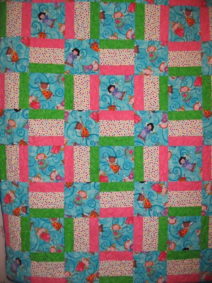 Fabricfanatic Sugar and Spice - Focus fabric squares - adorable angels - alternate with modified Rail Fence blocks, creating "framed" motifs. Made for my husband's great-niece, who was named for both her great-grandmothers.