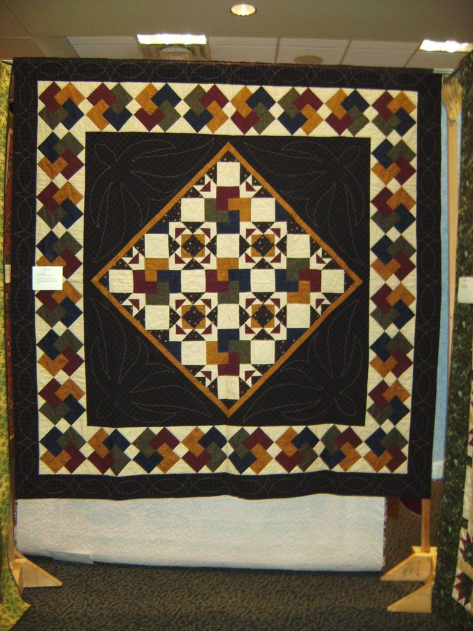 | Design Source - Description | Started as a wall hanging, Plain and Fancy, consisting of Card Trick and Illinois blocks but then it grew into a full size quilt with center surrounded by Card Trick and plain border. |