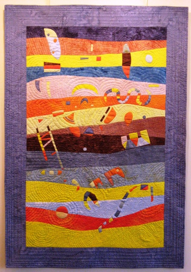 BethS As Close to Kandinsky As I'll Get - I absolutely love Kandinsky's work. Of course, I'll never be able to afford an original. I decided that making this quilt was as close as I'll get! The borders are machine quilted; the body is hand quilted. It is made with commercial and hand-dyed fabrics.