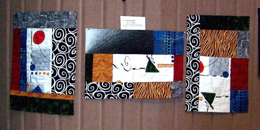 LYNNA BIRTHDAY CONETTI - FOR MY 50TH BIRTHDAY, I HAD A QUILT PARTY WITH 7 WOMEN IN MY QUILT GROUP. I INVITED CINDY GEIST, A QUILTER FROM ONE OF MY GUILDS TO TEACH AT MY PARTY. THIS IS A PROJECT (3 SEPERATE QUILTS THAT GO TOGETHER) I MADE AT MY PARTY. HOW MUCH BETTER CAN IT GET THAN SPENDING A BIRTHDAY WITH GREAT FRIEND QUILTING?