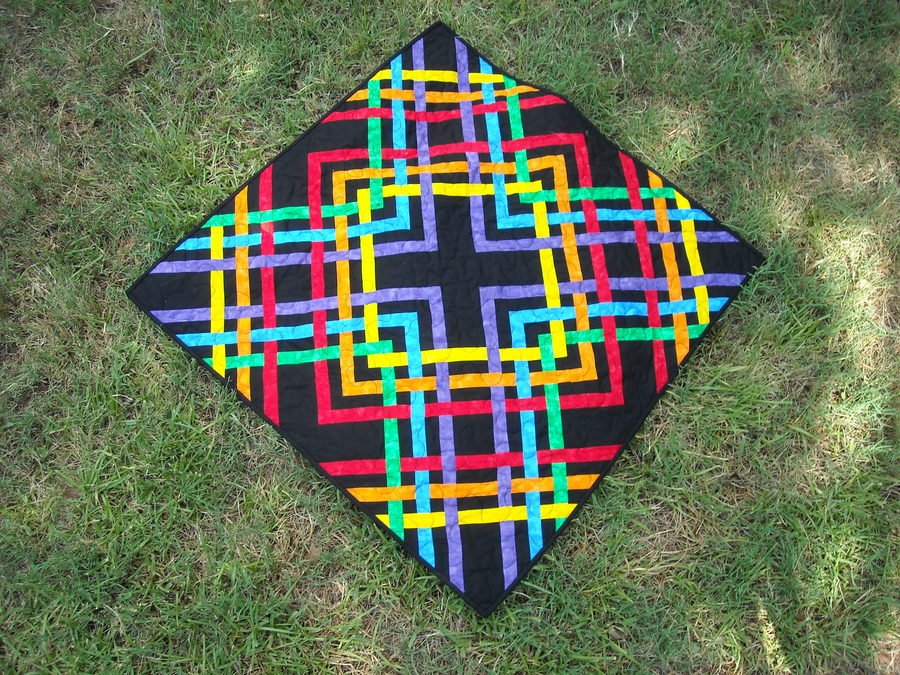 Jannette A Summer Morning's Weaving - The design of this pieced quilt came from a painting my daughter, Marlo Craig Jones, made in college. It took a lot of time with graph paper and map colors to do this. Yes, I did ask her permission before I started it.