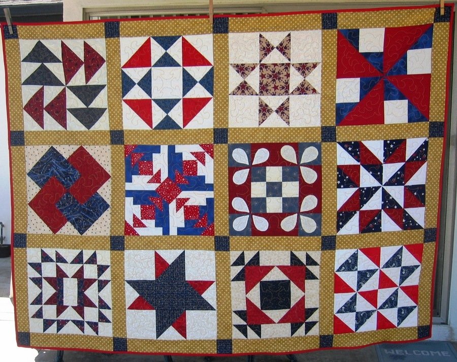 sewmary Stars and Stripes - I started this quilt in 2000 in a BOM class. I gave up with the hand applique block. I started machine applique in 2008. This was given to a student of mine who served in Afghanistan.