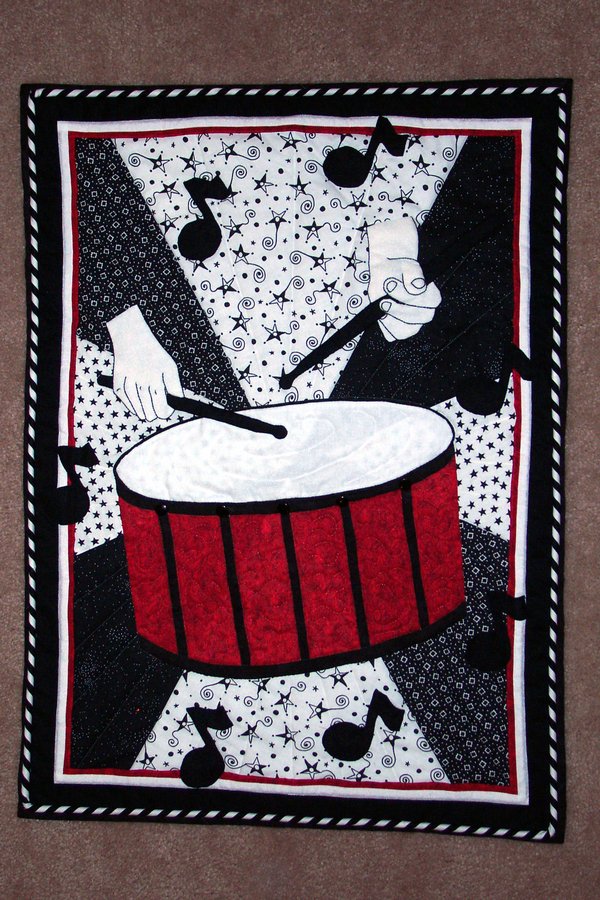 | Design Source - Description | This was a Guild challenge using only black and white with the red fabric they provided. No gray!! I made it for my son who is a drummer. |