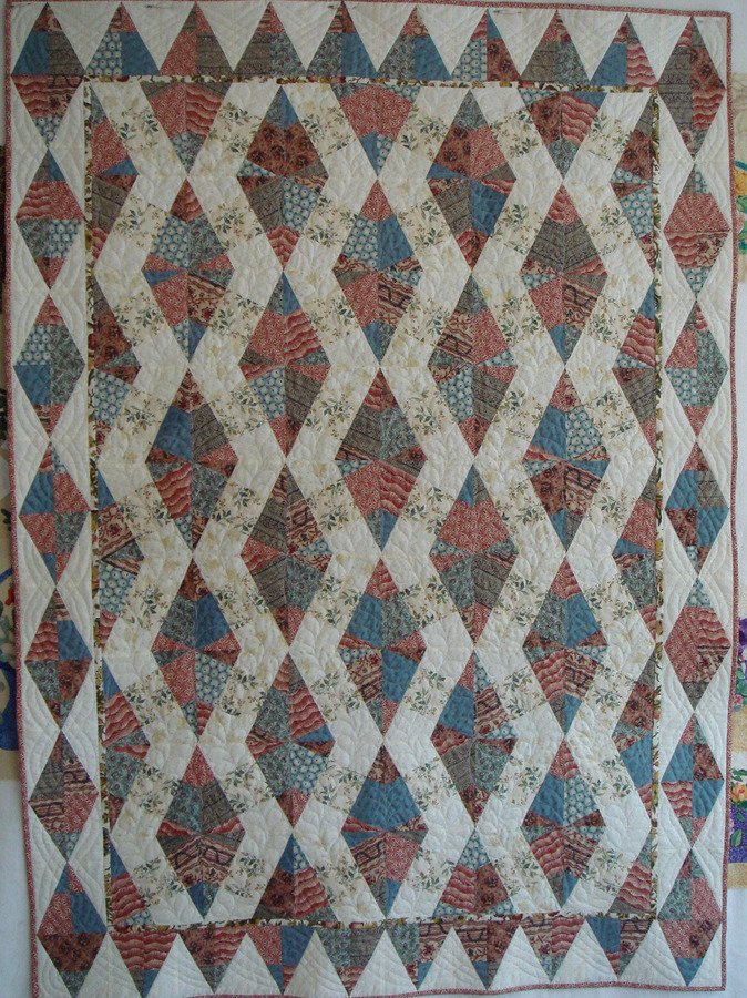 Lorna1021 Granny's X-Block - This is for our guild's fabric challenge. I didn't care for one so I decided to minimize it and press on with the challenge. One of the challenge fabrics is in the center of each 9 patch. The other is "hiding" in the 1/2" inner border.