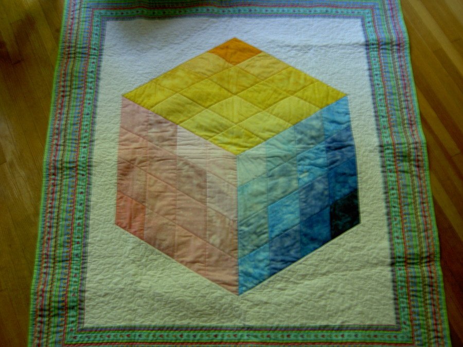 Quiltcamp Baby Cube - I designed this quilt for the Fons and Porter baby quilt contest in the fall of 2007. I never finished it in time to submit to the contest, I finally finished it this summer.