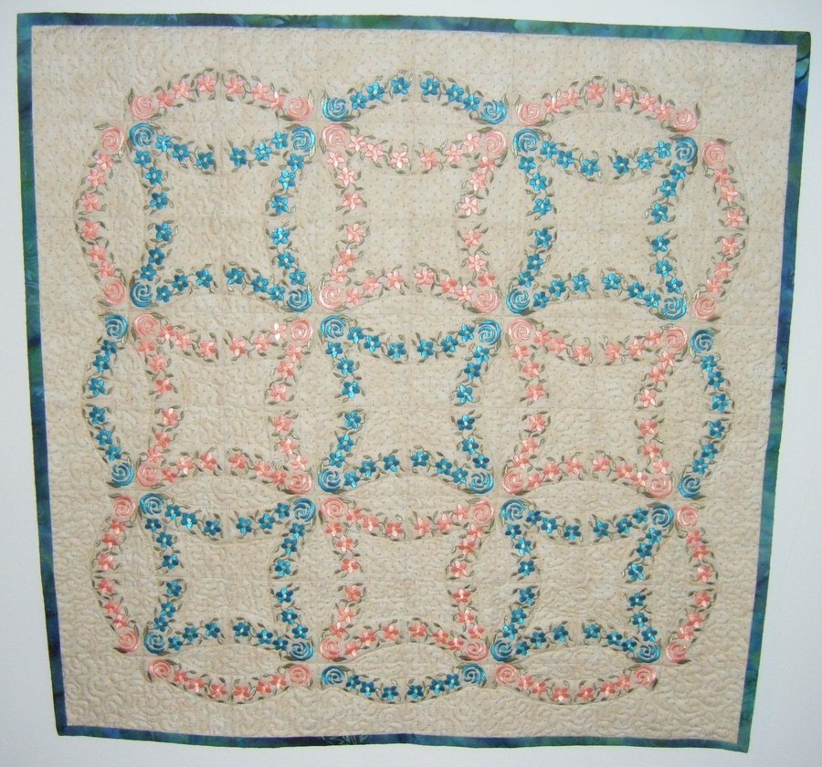 she-quilts Embroidered Wedding Ring - My second embroidered quilt. I did this following a bit of instruction in our Embroidery Club. It took a long time to stitch out those 64 blocks but I really like it. It hangs in my dd's bedroom.