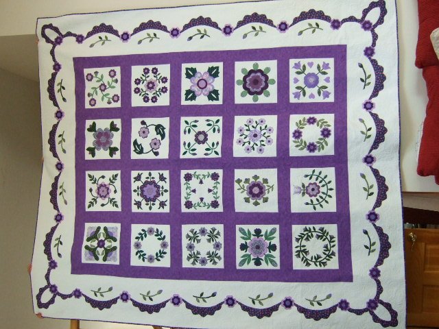 HappyQuilter Denise's Violet Rose Sampler - This quilt was given to my daughter on Mother's Day 2008. Her favorite color is purple and she treasures this beautiful heirloom from her mom, Barb Siefker.