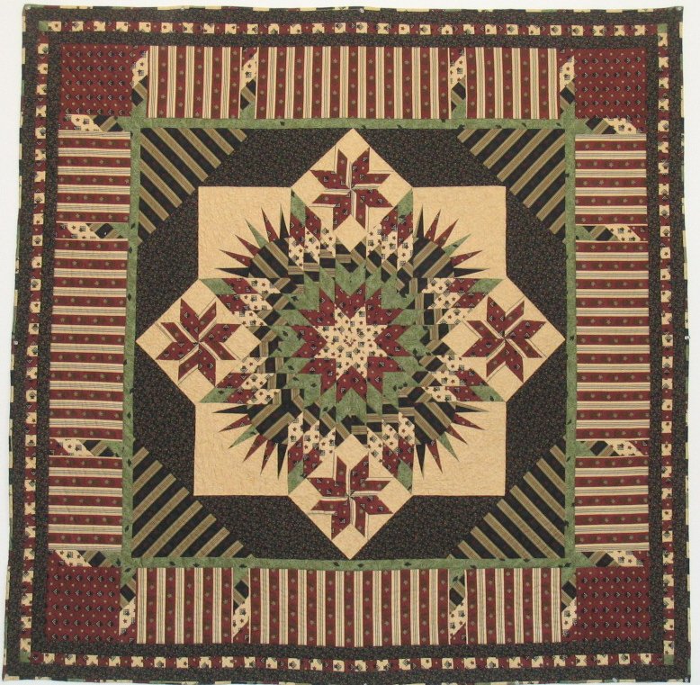 mkdquilts Victorian Thistle - I made this quilt for an ugly duckling challenge where you were given a brown bag with 4 yards of material. The top of the quilt had to comprise 75% of that fabric. (I'm approximating the dimensions.)
