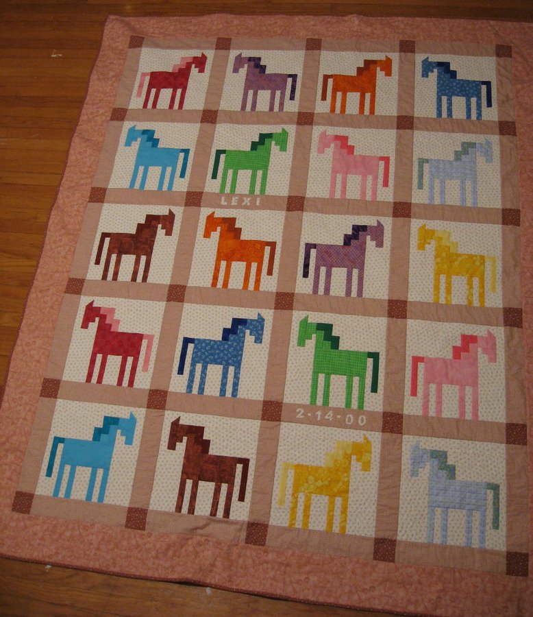 momparde Pony Quilt - 20 blocks of 10 different colors, half reversed. Easy to do with a patchwork theme.