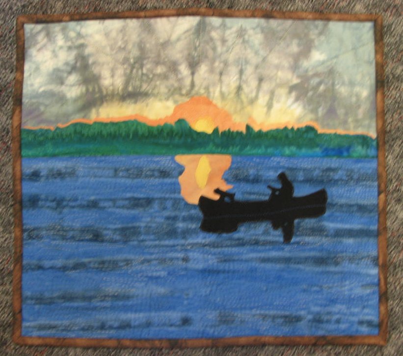 quiltinjewel Holly's After Glow - I took a photograph that my Great Aunt Vivian took of her late husband, Holly, and his dog. I made her a wall hanging of it to have at the nursing home.