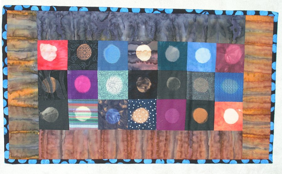 PamelaCozby Moons - I bleached circles on different fabrics and pieced them together