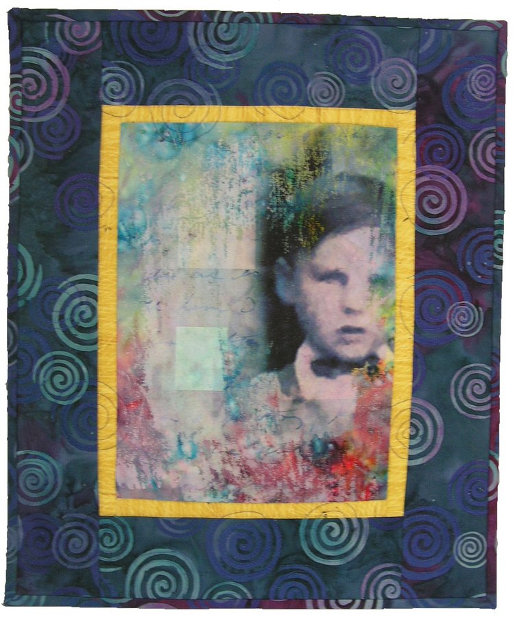 PamelaCozby Dad - I used a photo of my Dad when he was little and added several layers in PhotoShop. I used a digital ground on a comercial batik but did not completely cover the fabric. Then I printed and washed the fabric. Where there is no digital ground the print washed away giving the distressed look. I gave this one to my Mother and intend to make similar ones for his grandchildren.
