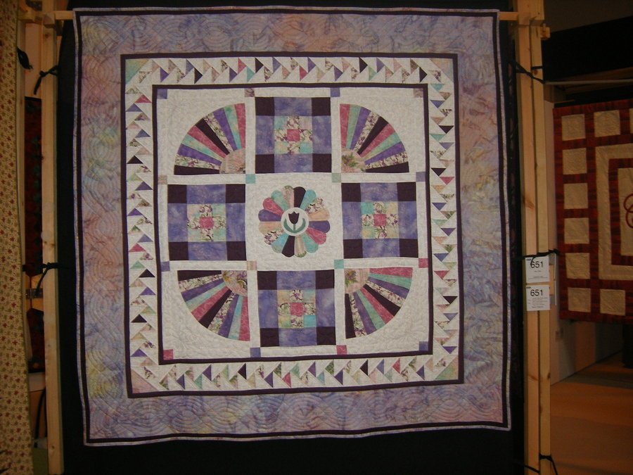Brenda Swan Song (aka 'That purple thing!) - A freind sent me fabric as a gift, they were Japanese in look so then I made fans! the rest just evolved. The last quilt I shall ever hand quilt - my fingers are now too painful with arthritis.