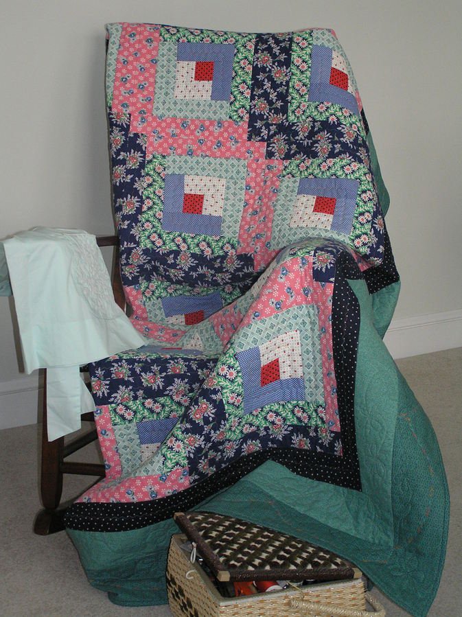 traveltheworld Remembering GrandMa - This quilt was made, front and backing, from vintage feed sacks I found at antique shows. My paternal Grandmother was a quilter and made clothing for her children and grandchildren from feed sacks. This is a memory I love.