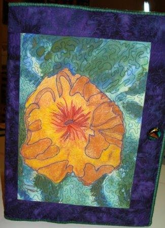| Design Source - Description | Journal book cover was created by scanning a photo of a painting that my mom had created and then adding quilting embellishment. |