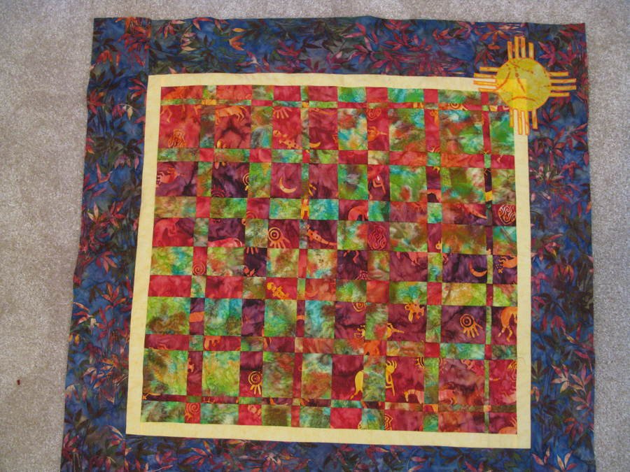 | Design Source - Description | This is a beautiful petroglyph material made into a convergence quilt. Inspiration from the petroglyphs in ABQ, N.M. Part of the weekend quilting bee. I need to add a hand applique. |