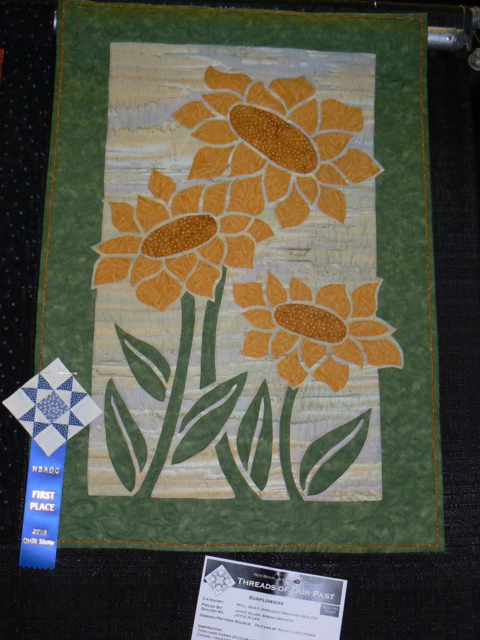 jj2allen Sunflowers - This came from a 2 color applique quilt pattern from Nancy Lee Chong of Pacific Rim Quilt Co. I wanted to try in in 4 colors.