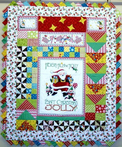 | Design Source - Description | QUILT MADE WITH CHRISTMAS PANEL. FLYING GEESE BLOCKS, PINWHEEL BLOCKS AND SIMPLE 4PATCH BLOCKS. BORDER HAS PRAIRIE POINTS. |