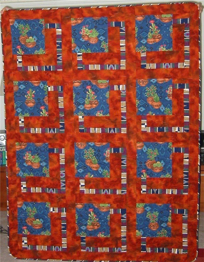 | Design Source - Description | I want to make "nap" quilts for all my friends in California. I finally finished this Southwestern quilt for my friend Diana who is a Yorba descendant. |