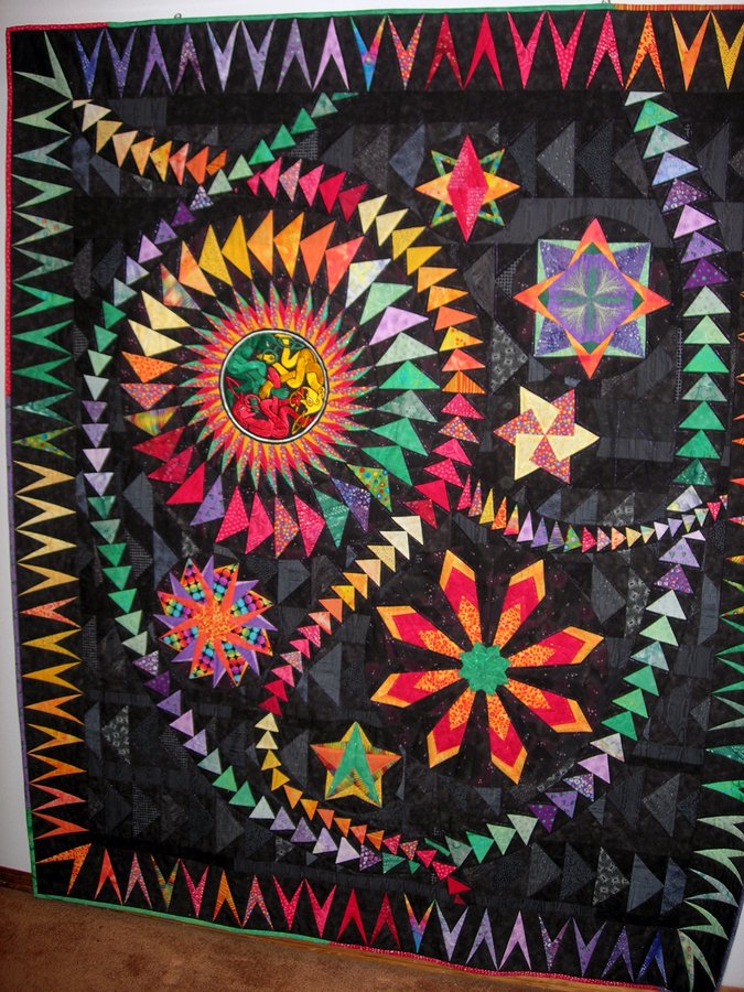 blueearth The Scottish Beard Pullers - The technique for the stars was learned in a Gail Garber class in Sisters, OR. The center motif is an embrodiered piece purchased during a 3 month stay in Scotland. My son really wanted something unique using this piece.