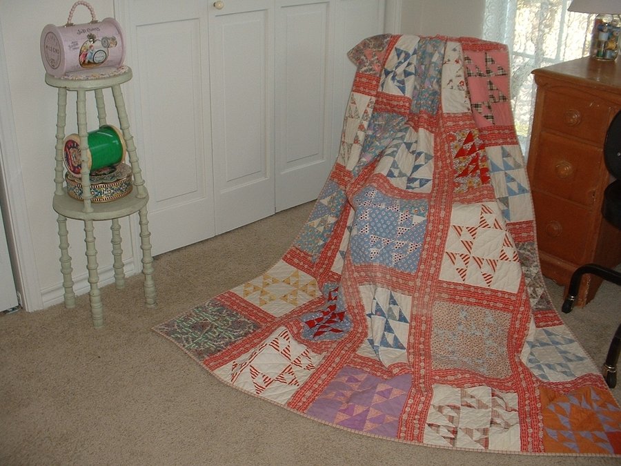 Quiltbirdie Cat's Cradle - My grandmother hand-pieced this quilt in the 40's or 50's and I hand-quilted in about 10 years ago.