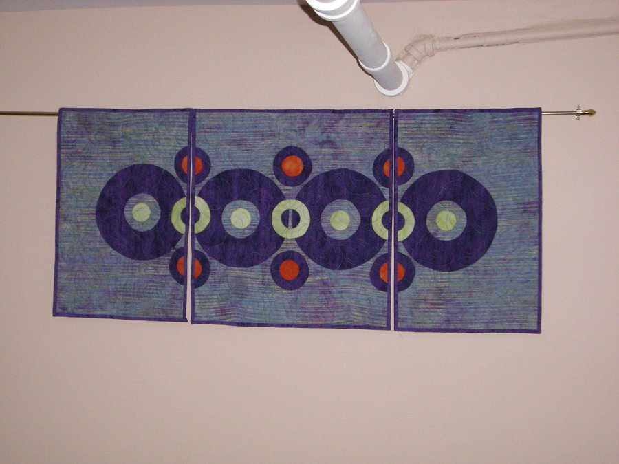 | Design Source - Description | Art quilt, wallhanging tryptich. Quilt top made and quilted as one piece and cut into three separate pieces and then bound, but it is hung as one piece. |