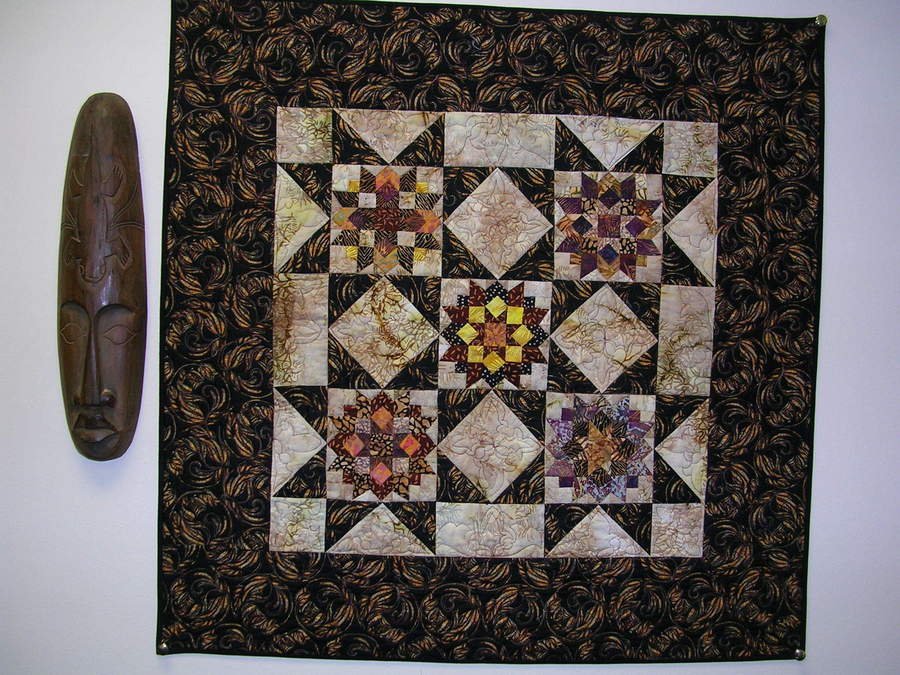 melanezoe Stars of Africa - This was a paper-piecing pattern tissue packaged in a tiny, 2" square zip-lock that hung around my quilt shop for over a year before I took it to a retreat and actually pieced it. I love the batiks.