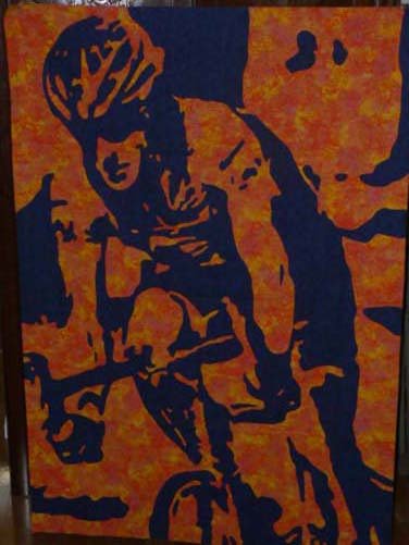 Cher4 The Cyclist - This was my contribution to 'Cops for Cancer' 2007. Every year a team of cops ride their bikes from the lower mainland up the Fraser Valley raising money for cancer. Our guild makes a quilt for each of the kids they are riding for. The officers give their buddy a quilt at the beginning of the ride.