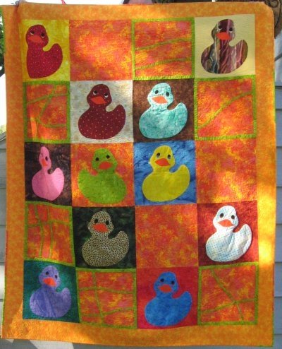 Cher4 Duckies - My latest contribution to 'Cops for Cancer' 2008. Every year a team of cops ride their bikes from the lower mainland up the Fraser Valley raising money for cancer. Our guild makes a quilt for each of the kids they are riding for. The officers give their buddy a quilt at the beginning of the ride.