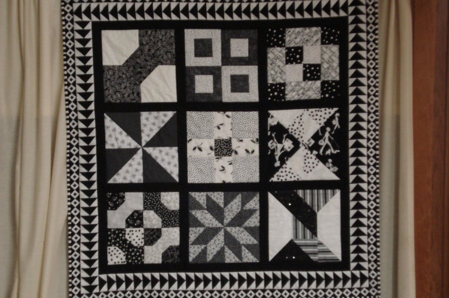 | Design Source - Description | I made this quilt with blocks received from a block swap with quilters I met here on TQS. I love black and white fabrics and have been collecting them since I started quilting. |